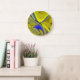 3D Abstract Rainbowart in Gold Yellow Blue Large Clock
