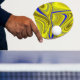 3D Abstract Rainbowart in Gold Yellow Blue Ping Pong Paddle