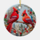 3D Embroidered Look Cardinal Red Birds Christmas Ceramic Tree Decoration