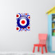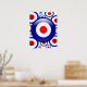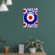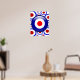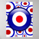 3d effect mod target on a red white and blue sixties inspired pattern background