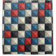 A bold and architectural 3D geometric pattern shower curtain featuring pyramid-shaped studs in red, blue, cream, and dark grey tones. Its seamless, high-contrast design creates a striking illusion of depth and texture.