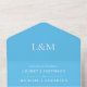 Sky Blue and white typography, text only, monogrammed, minimalist, simple plain wedding invitation which includes a tear-off rsvp postcard (3 in 1 as per images). Item includes senders address, a return address and text template fields for the wedding ceremony and reception as desired (edit text to suit your unique needs). You can also add couples initials, monogram. Modern and elegant budget friendly invitation to suit your needs.