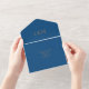 Classic Blue and gold typography, text only, monogrammed, minimalist, simple plain wedding invitation which includes a tear-off rsvp postcard (3 in 1 as per images). Item includes senders address, a return address and text template fields for the wedding ceremony and reception as desired (edit text to suit your unique needs). You can also add couples initials, monogram. Modern and elegant budget friendly invitation to suit your needs.