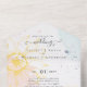 This wonderful elegant and modern wedding stationery offers 3 in 1! An invitation, RSVP, Details and NO envelope required as this folds into a form you can pop in the post as-is. Design featured here is that of modern Sunflowers line art against dusty pink and blue abstract and yellow backdrop. It is perfect for a Summer wedding. If you are on a low budget have a look at our other options via the attached collection.