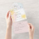 3in1 Modern Sunflower Dusty Pink Blue Wedding RSVP All In One Invitation
