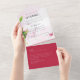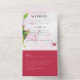 3in1 Pink Magnolia Rose Wedding RSVP All In One Invitation