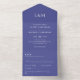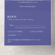 Purple Blue (colour code #4e5196) and white typography, text only, monogrammed, minimalist, simple plain wedding invitation which includes a tear-off rsvp postcard (3 in 1 as per images). Item includes senders address, a return address and text template fields for the wedding ceremony and reception as desired (edit text to suit your unique needs). You can also add couples initials, monogram. Modern and elegant budget friendly invitation to suit your needs.