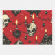 19" x 29" Wrapping Paper Sheet Set, 19" x 29" Matte Sheet. Gothic Style Festive Skull Holiday Wrapping Paper, Red, Black