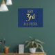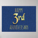 3rd Anniversary design over a blue faux leather background. Can be used for any kind of 3rd anniversary.
