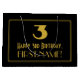This Roaring '20s look inspired vintage appearance birthday-themed gift bag design features a large art deco style inspired number "3", the message "Happy 3rd Birthday,", a personalised name, and a border pattern consisting of thin lines. It features a black-coloured background. A birthday themed gift bag like this may be used to wrap a gift or present being given to celebrate somebody’s 3rd birthday. [~Z0000501]