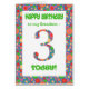 A 3rd birthday card for a Grandson, with a bright and bubbly patterned number and border. You can change the inside message if you wish.