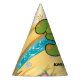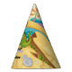 Grinning green dinosaur is celebrating his third birthday! Cute birthday party hat for the three year old!