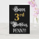 3rd Birthday — Fancy Script; Faux Gold Look; Name Card