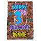 The front of this fun birthday-themed gift bag design features the message “HAPPY 3RD BIRTHDAY,” having a colourful, vibrant, graffiti and urban street art inspired appearance, plus an editable recipient name. The background features a brick wall inspired pattern. A colourful birthday themed gift bag like this might be a fun way to wrap a gift or present being given to somebody who is celebrating their 3rd birthday. [~Z0000536]