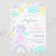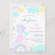 3rd birthday invitation with a funny unicorn, which is surrounded by cute pictures of a rainbow, cloud, sun, ice cream.