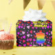 This happy and joyful birthday wrapping paper design features a large number “3” having a rainbow spectrum gradient inspired pattern. It also features the message “Happy 3rd Birthday,”, and a personalised name. The background features a pattern of red, purple, and pink heart shapes of various sizes. Wrapping paper like this might be used when giving a gift or present in honour of somebody’s 3rd birthday. [~Z0000549]