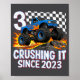 3rd Birthday Monster Truck 3 Year Old Boys Party B Poster