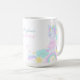 3rd birthday mug with a funny unicorn, which is surrounded by cute pictures of a rainbow, cloud, sun, ice cream...