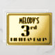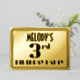 The front of this 1920s-1930s era style inspired third birthday celebration foil invitation card design features a custom name, an art deco style inspired number “3rd”, the message “BIRTHDAY PARTY”, and a border pattern consisting of lines. The back features personalised details about the event, such as the date, time, place/venue, and any other information that may be useful. Elegant, stylish, customisable invitations like these might be used to invite attendees to a birthday party being held in celebration of somebody’s 3rd birthday. [~Z0000606]