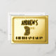 The front of this stylish and Roaring Twenties inspired third birthday party/celebration foil invitation postcard design features a customizable name, an intricate art deco style inspired number “3rd”, the message “BIRTHDAY PARTY”, and a border pattern consisting of lines. The back features personalized details about the event, such as the date, time, location, and any other important information. Elegant, stylish, editable invitations like these might be used to invite guests/attendees to a birthday gathering/party being held to celebrate somebody’s 3rd birthday. [~Z0000610]