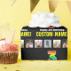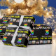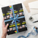 This bold and cheerful birthday wrapping paper design features a large number “3“ having a multicolor rainbow spectrum inspired gradient pattern, plus the message “Happy 3rd Birthday,“ and a customisable recipient name. There are also photos that can be personalised, perhaps with photos of the recipient, the recipient’s family and friends, and/or the sender(s) of the gift. Birthday themed wrapping paper like this might be a fun way to wrap a gift or present being given to somebody who is celebrating their third birthday. (Photography © Storytree Studios, Stanford, CA.) [~Z0000670]