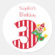 Cute circus clown invitation for celebrating a 3rd Birthday featuring a clown peeking out from behind a large red and white striped number three.The text is fully customisable for your own special occasion. Visit CelebrationBazaar to view the collection of gifts, party favours and stationery featuring this cute circus birthday design.