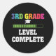 3rd Grade Level Complete Kids Back to School Gamer Classic Round Sticker