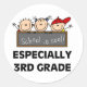 Three stick figure kids with big smiles hold a writing board that reads "School is Cool!" and black text reads "Especially 3rd Grade" on 3rd grade School is Cool T-shirts, mugs, buttons, magnets, stickers, cards, and other items perfect for kids who are in third grade and third grade teachers!