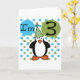 A penguin in a party hat, blue and green balloons and polka dots on a fun I'm 3 Birthday design.
