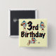 3rd Sock Monkey Baseball Birthday 15 Cm Square Badge