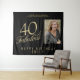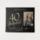 Elegant Black and Golden 40 and Fabulous 40th Birthday Photo Backdrop Tapestry. 40 and fabulous text in trendy golden script on black background. Personalise it with your photo, your name and the age, and make your own elegant birthday party backdrop for woman`s birthday party.