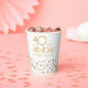 40 and Fabulous Elegant Gold Glitter 40th Birthday Party Paper Cups. Modern design with trendy typography and faux gold glitter spots. The design has a custom name. Make personalised 40th birthday party paper cups for her. Personalise with your name. You can erase any text on the cup.