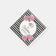 A napkin for a 40th birthday party. Classic slim black and white horizontal stripes as background. With girly and feminine pink roses as decoration.