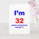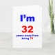 I'm 32 years away from being 72 Humourous 40th birthday design that seems to shave a few years off your age with the very large lettering "I'm 32" and then the much smaller lettering "years away from being 72". Makes a great 40th birthday gift.