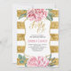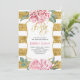40 Birthday Invitation - Blush Pink Watercolor Flowers and Gold Glitter Stripes