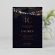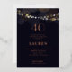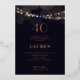 A classy and elegant Birthday Invitation featuring black background with string lights, text in Rose Gold Foil.