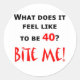 What does it feel like to be 40? Bite Me! Humourous design for the 40 year old who's not happy about turning 40 and a warning sign for others. Makes a great 40th birthday gift.