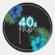 40 & Fab Neon Blue Silver Black Tropical Birthday Classic Round Sticker