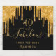 Simple and elegant 40th birthday wine label. A classic black background decorated with faux gold glitter drips, paint dripping look. With the text: 40 and fabulous. Personalise and add a name and a date. Date of birth or the date of the party. Golden text. The word Fabulous is written with a modern hand lettered style script with swashes.