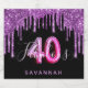 For a modern, trendy and glamourous 40th birthday party. A classic elegant black background decorated with dark purple coloured faux glitter drips, paint dripping look. With the text: 40 and Fabulous. Personalise and add a name. Purple coloured text. The word Fabulous is written with a modern hand lettered style script. Number 40 is written with a balloon style font.