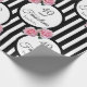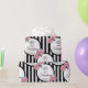 A wrapping paper for a 40th birthday. Classic slim black and white vertical stripes as background. With girly and feminine pink roses as decoration.