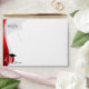 The stylish red, black, silver and white 40 year reunion envelope matches the invitation below.