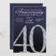 40th Anniversary Diamond Silver Navy Blue Modern Invitation