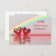 40th ruby anniversary invitation with a rainbow and two shiny ruby red hearts floating on the water. Customise the sample text on the back with your own information for your event.