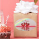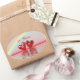 Oval stickers with my original artwork of a rainbow and two ruby coloured hearts floating on the water. Customisable text says "40 Years".