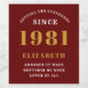A personalised classic label design for that birthday celebration for a special woman born in 1981 and turning 40. Add the name to this vintage retro style red, white and gold design for a custom 40th birthday gift. Easily edit the name and year with the template provided. A wonderful custom red birthday gift. More gifts and party supplies for that 40th party celebration available in the store.