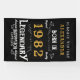 Personalised birthday banner. Add the name to this vintage style retro print birthday banner. Edit the name and year with the template provided. A wonderful custom black birthday wall hanging with white and gold vintage style typography. More gifts and party supplies available with the "Legendary" design in the store.