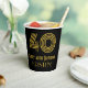 This vintage appearance and 1920s/1930s style inspired birthday paper cup design features a large art deco inspired appearance number “40”, plus the birthday greeting message “Happy 40th Birthday,” and a custom name. It also has a black-coloured background. 1920s/1930s style inspired birthday themed paper cups like this might be used at a birthday party celebrating somebody’s fortieth birthday. [~Z0000546]