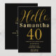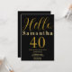 This is a modern and stylish 40th birthday party invitation. This elegant and chic design is in classic black and gold. It is a personalised design, with the text, "Hello 40", and space you to add your name and party details. A smaller version of the personalised, "Hello 40" typography script motif is repeated on the back, along with main party details (name, age, and celebration date). This stylish design is perfect for an elegant and unforgettable 40th birthday party celebration. To personalise, simply add your name, date, party venue and RSVP information in the personalise this text box. To change the colour or font, check out the design editing tool. If you need help with personalisation, matching products, or for a custom design contact me via zazzle chat or email: ursuladawnmoon@gmail.com