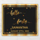 Elegant and modern for a 40th birthday party. Black backdrop and faux gold text written with a trendy hand-lettered style script: hello forty. With golden dots as decor. Templates for name and date, golden letters. You can change the background colour to match your theme. Click customise and then "select a background colour" on your right.